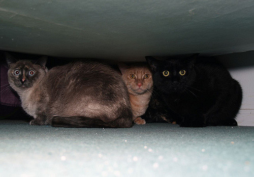 Cats tend to puff up and hide, they may even attack you if approached.